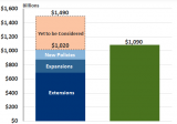Only half of the 14 bills approved by the Ways and Means Committee even hold themselves to the more relaxed standard where extensions are free. The other half either expand current tax breaks or enact entirely new breaks, which would add about $275 billion to the debt over and above the $550 billion cost of simply extending current policies. And there are several dozen provisions that haven’t even been considered; all told with interest costs, the expansions could reach $1.5 trillion.