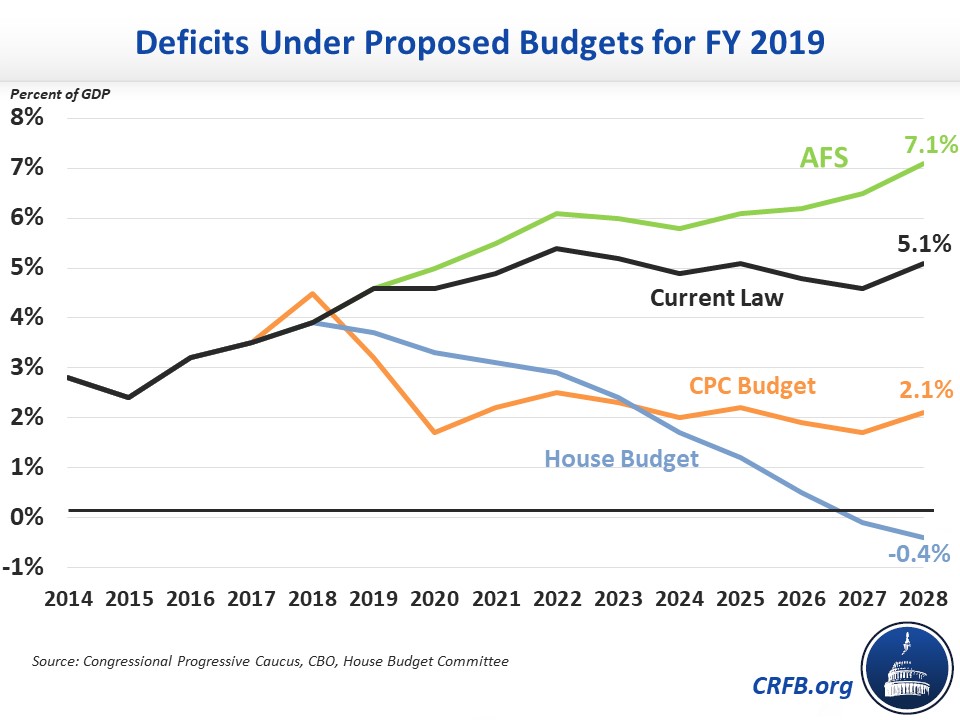 The Congressional Progressive Caucus (CPC) released its “The People’s Budget: A Roadmap for the Resistance” for Fiscal Year (FY) 2019, which calls for large increases in spending but enough new revenue to both offset that spending and put debt on a downward path as a share of the economy.