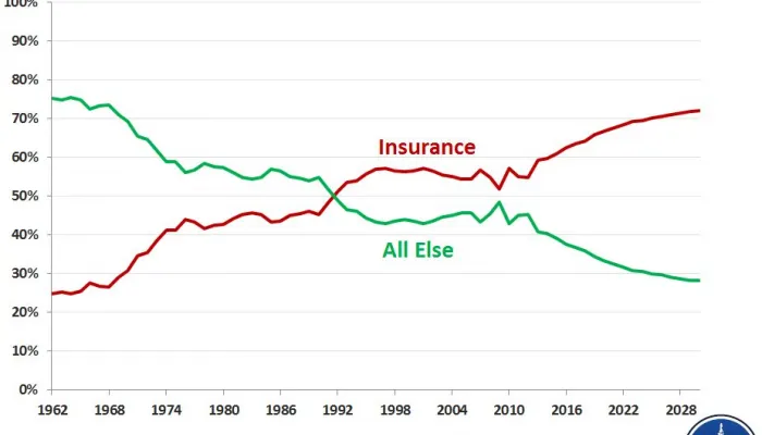 An Insurance Conglomerate with a Shrinking Government on the Side, in Three Graphs