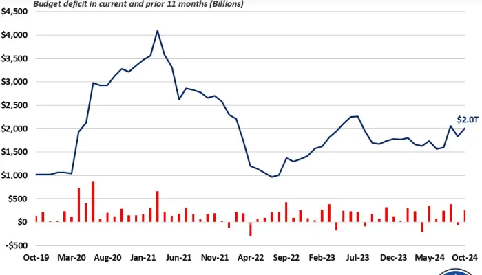 12-Month Rolling Deficit Totals $2.0 Trillion in October 2024
