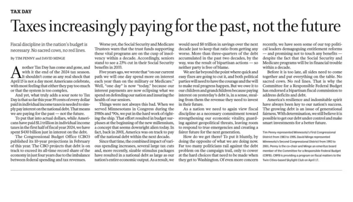 Tim Penny & David Minge: Taxes increasingly paying for the past - not the future