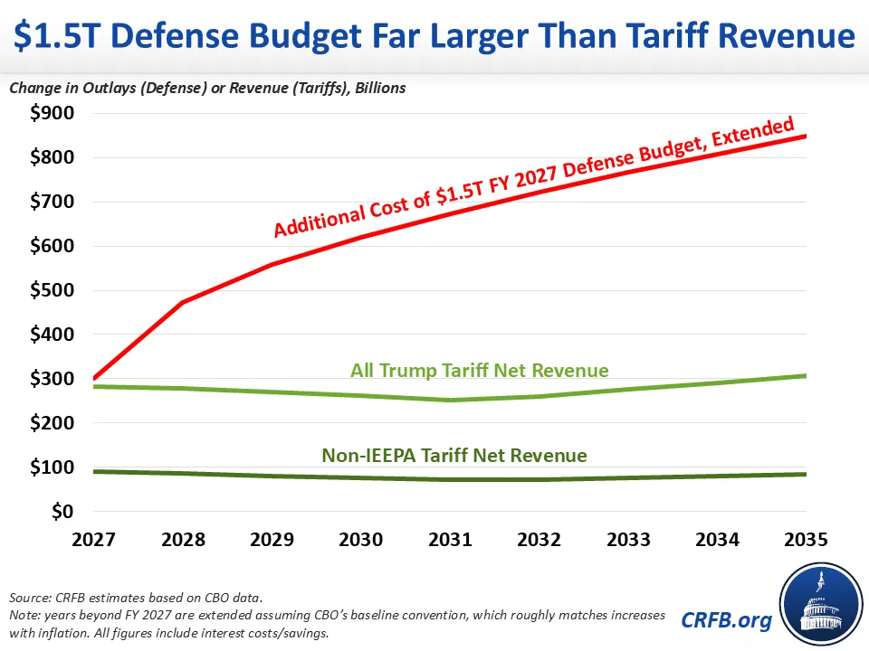 In a post on Truth Social, President Trump called for increasing the Fiscal Year (FY) 2027 defense budget to $1.5 trillion, rather than $1 trillion he said he previously wanted to propose. We preliminarily estimate that this would increase defense spending by $5 trillion through 2035, adding $5.8 trillion to the national debt when interest is included.
