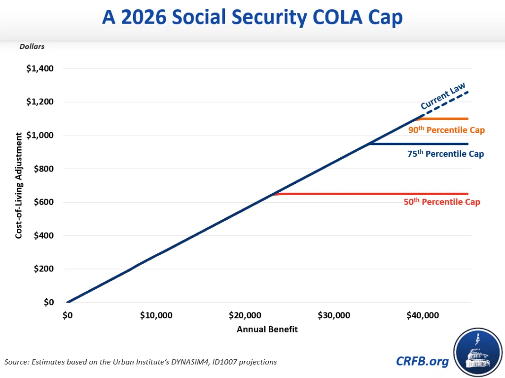 Under a COLA cap, most beneficiaries would continue to receive the same COLA as under current law. For example, a typical worker who retired this year at their normal retirement age will receive an $850 COLA in 2026 and would not be affected by the cap. On the other hand, a higher earner with a $1,150 COLA would instead receive one at the $950 cap.