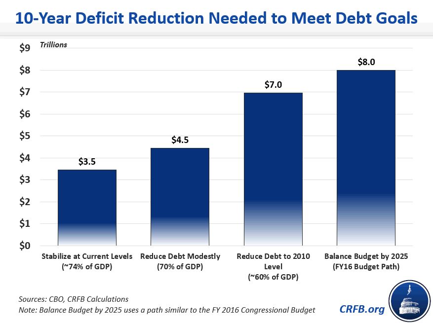 | Reduce Debt to 2010 Level (~60% of GDP) | $5.0 trillion | $7.0 trillion |
