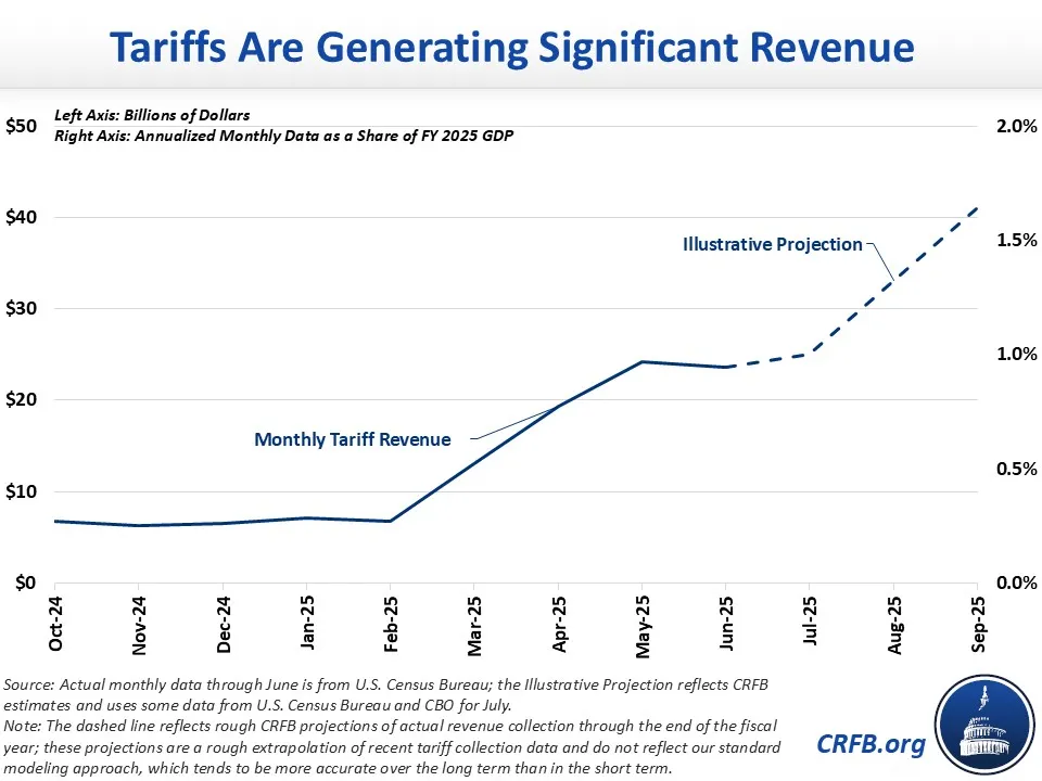 - Monthly tariff revenue has more than tripled, from $7 billion late last year to about $25 billion in July and is on course to rise substantially in the coming months.